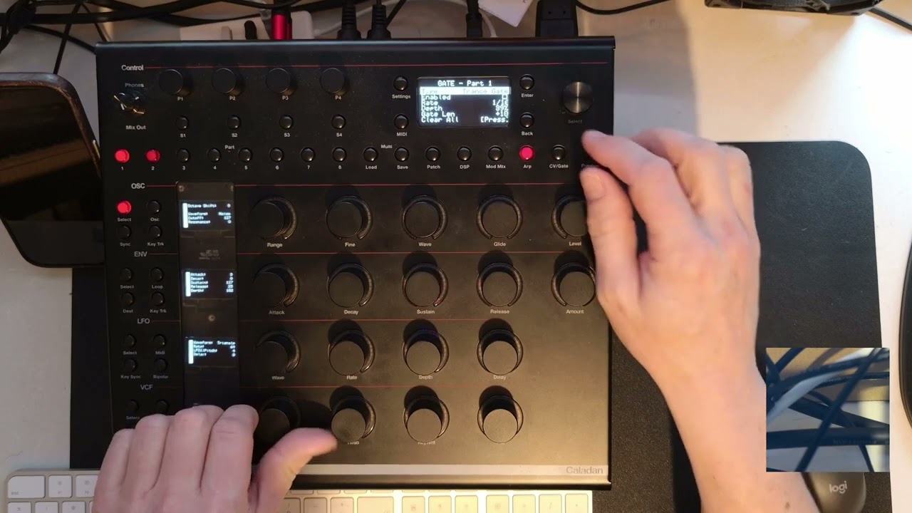 In addition to every part having its own 64 step sequencer, you can also choose between arpeggiator (already shown) or gate pattern.