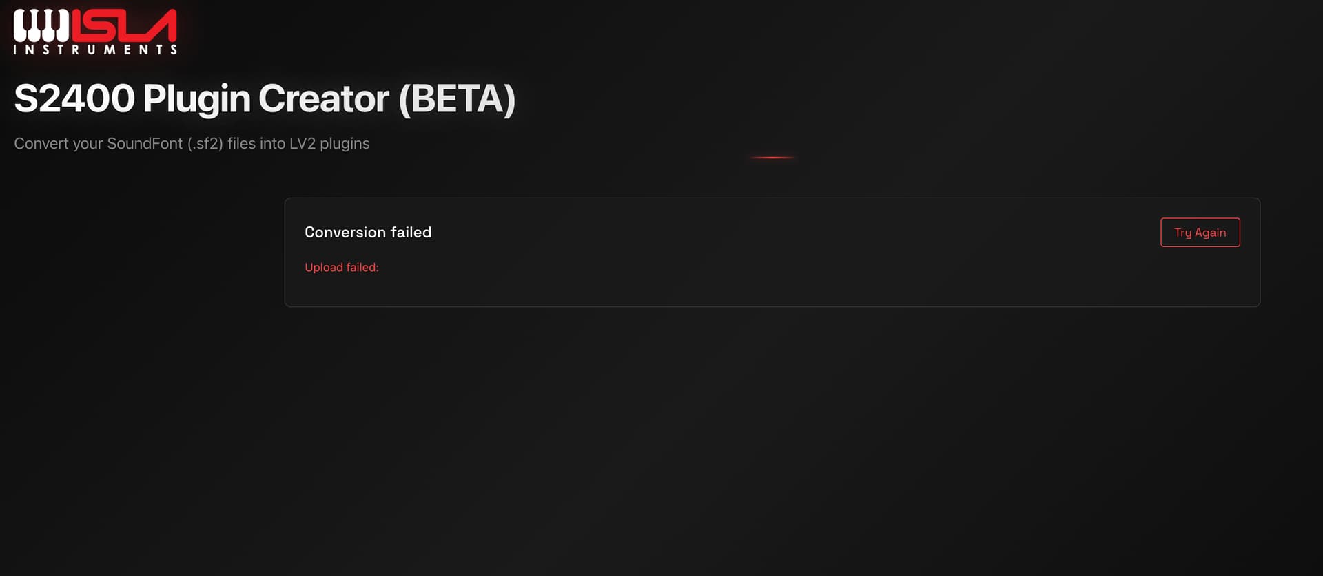 So, no matter what size of .sf2 file I use, I get this every time. Usually the progress bar even completes before it happens. Any ideas why they won’t work? I even tried an 8.7MB file and it didn’t work.