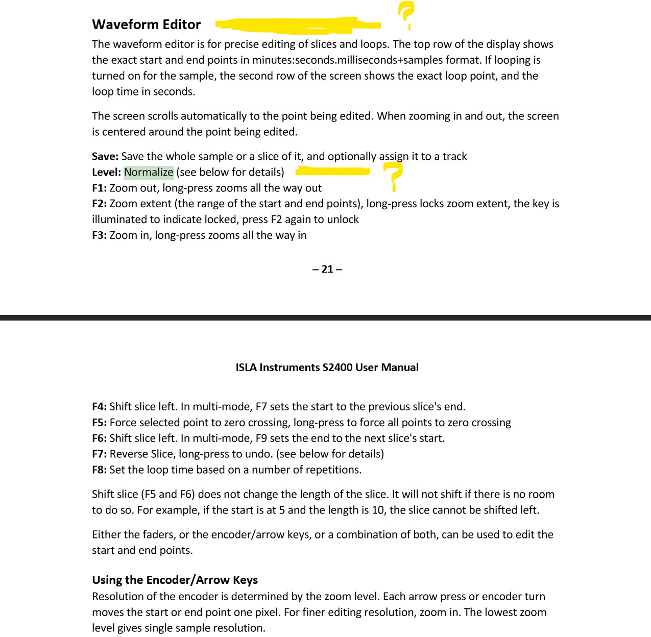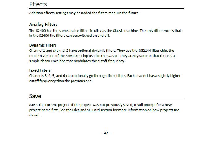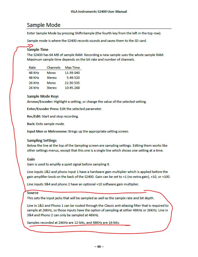 Yeah I long ago sold on my elektron gear but their manuals really are ace. Fortunately the s2400 isn’t layers deep in the screen or knob pushes but visual cues and step by step processes are welcome. I’ve been very happy with Sunshine Jones “Missing Manuals” for the boutiques.