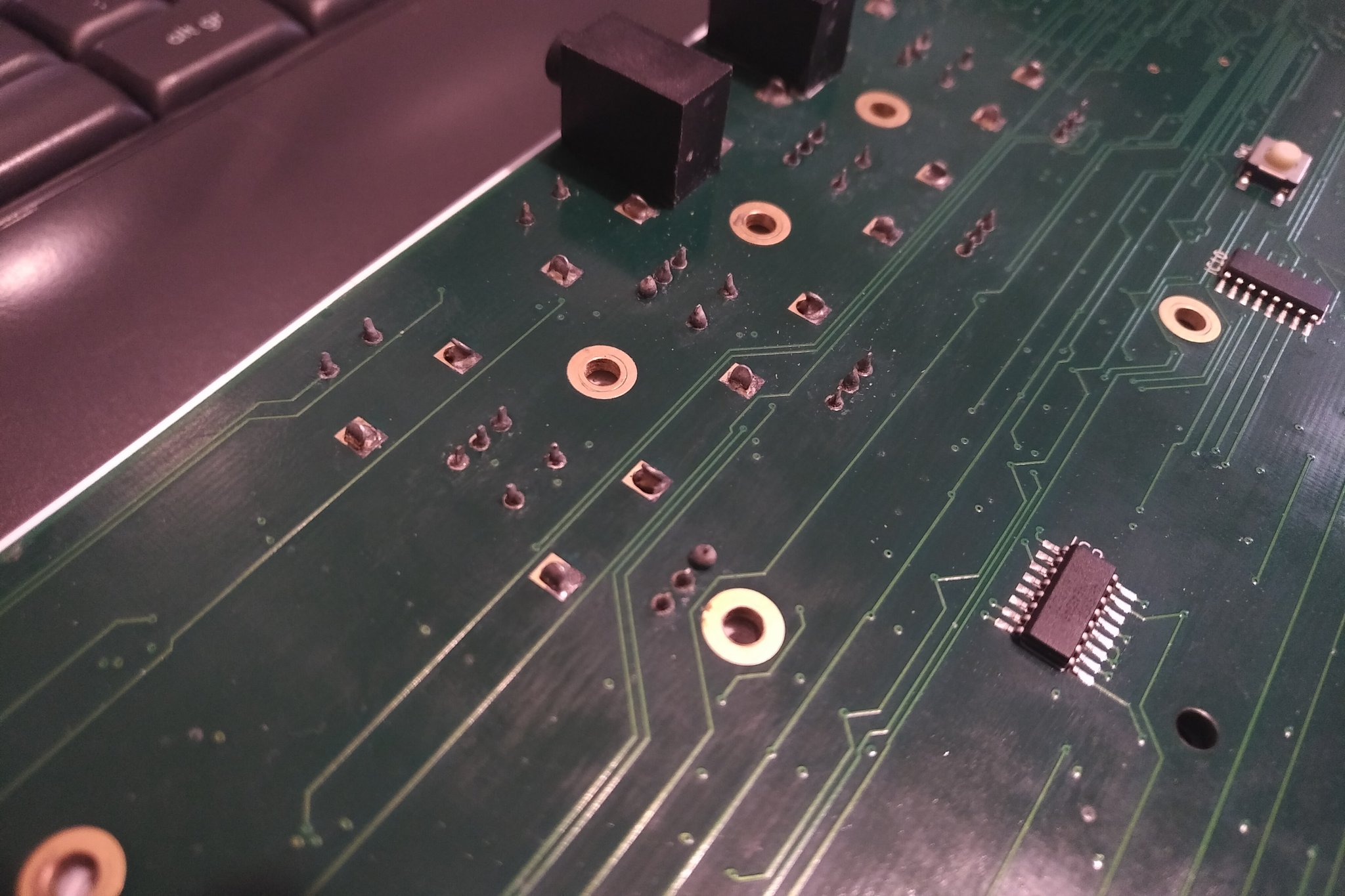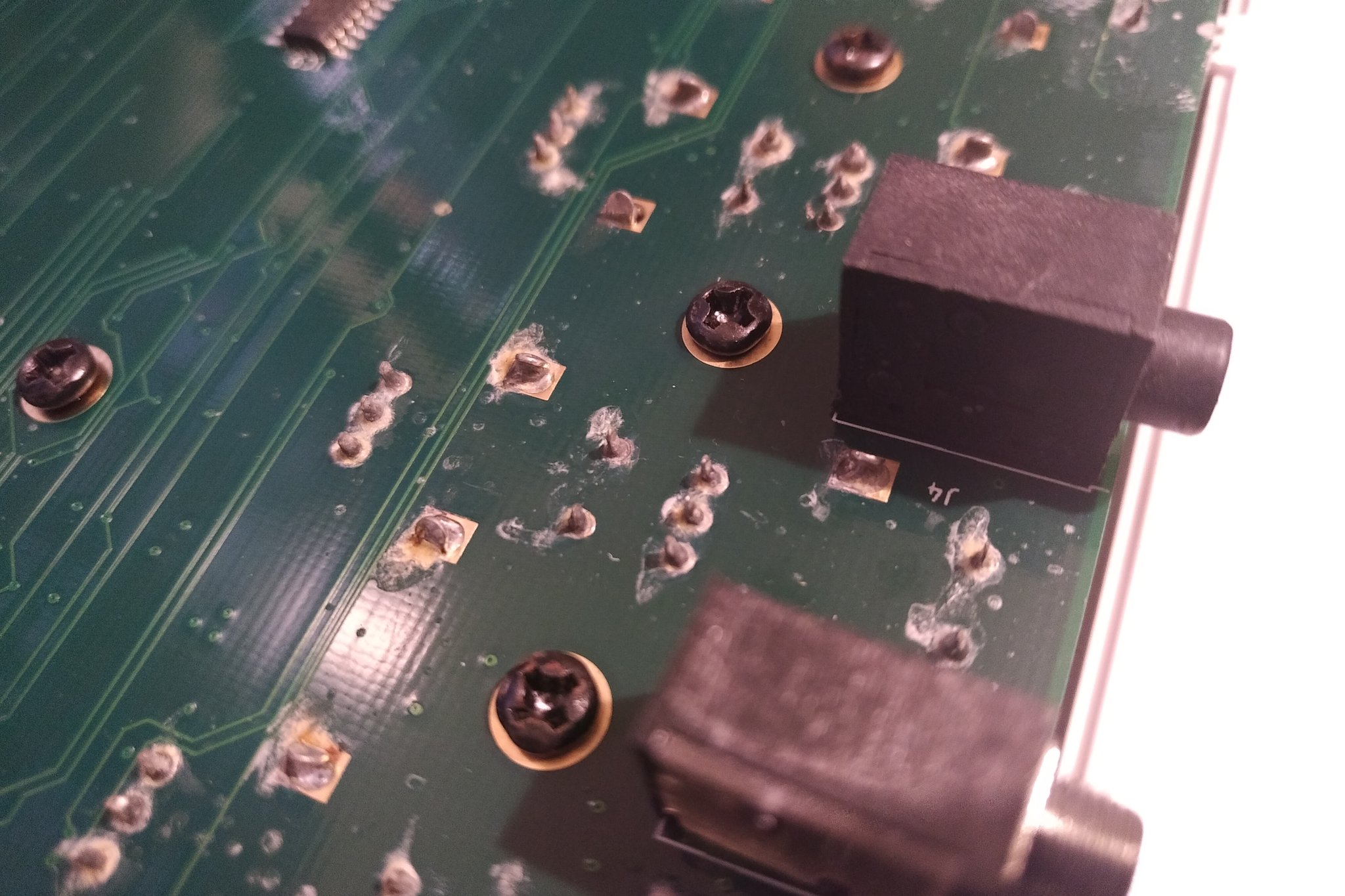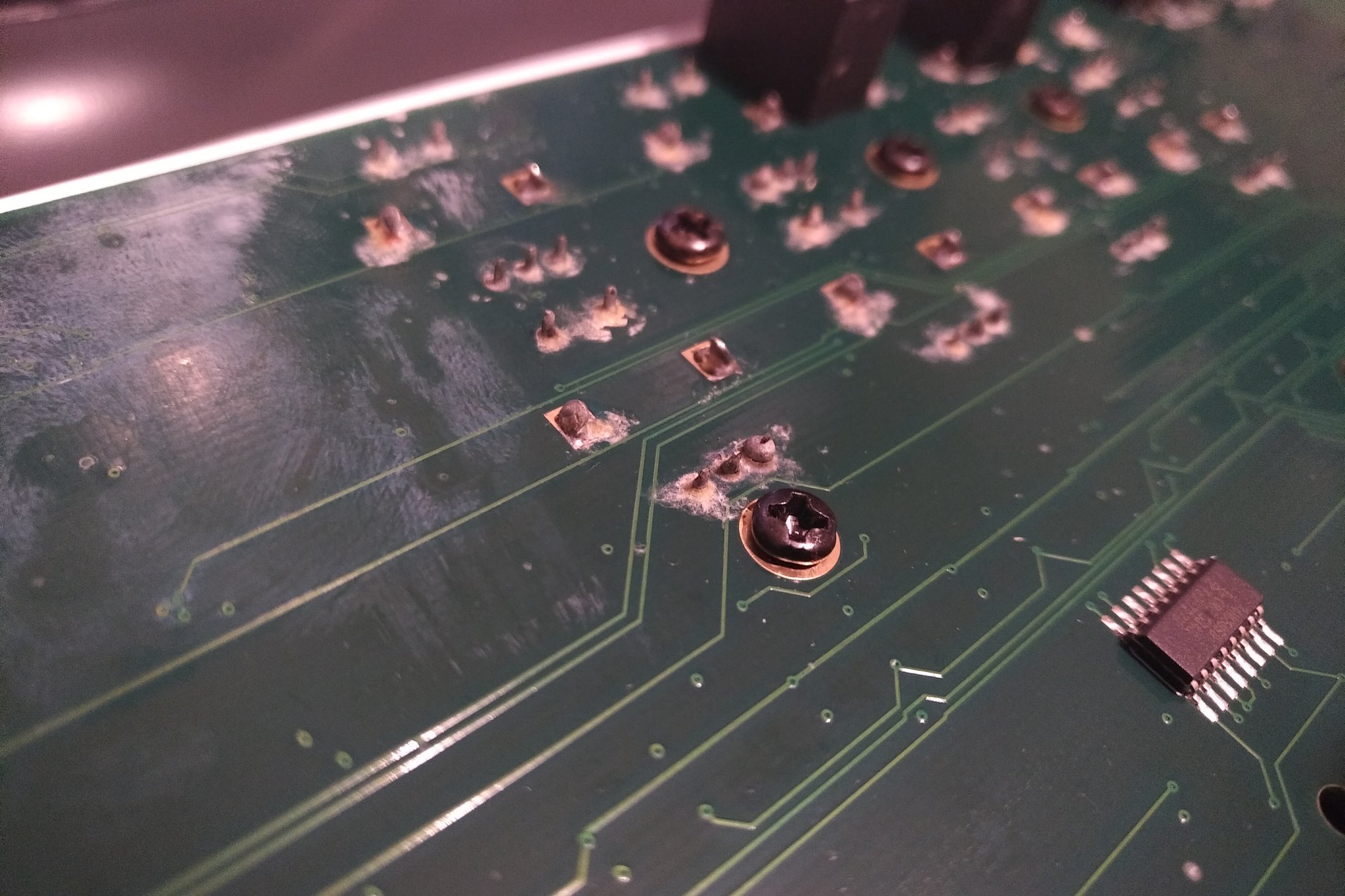 It seems there’s some kind of oxidization on the board and visible components legs (mostly encoders).